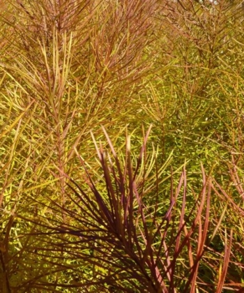 Eine sehr schöne Art aus der Familie der Blausternbüsche die, wie die meisten Amsonien, aus Nordamerika stammt. Bei Amsonia hubrichtii sind die Eigenschaften einer Blattschmuckstaude und einer Blütenstaude in einer Pflanze vereint: Sowohl die Blüten, als auch die Herbstfärbung der Blätter, stehen sich in Schönheit in nichts nach. Im Frühsommer erscheinen hell eisblaue Blütensterne an der Spitze der 70 cm langen Triebe. Die Triebe sind quirlig mit ganz zarten und schmalen Blättern besetzt, was ein wenig an einen Tannenzweig erinnert. Die Herbstfärbung ist spektakulär und die ganze Pflanze schmückt sich dann in einem Orangegelb. Der Standort sollte durchlässig, leicht feucht und eher sonnig sein. Sie wächst langsam, aber ausdauernd und wird mit den Jahren immer schöner.